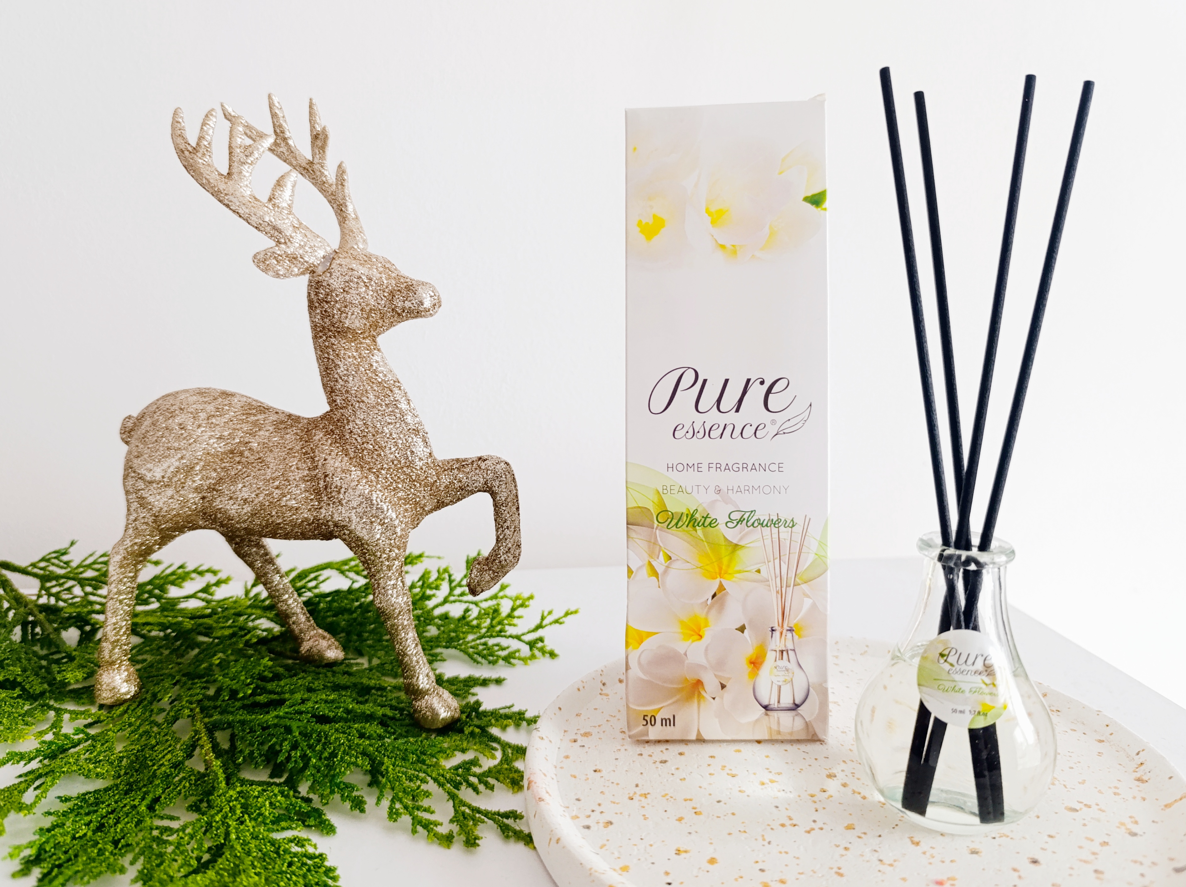 Myślę, że każdy lubi, gdy w jego domu jest ładny zapach. Sama na co dzień lubię świeży aromat, który wypełnia wnętrza w moim domu. Aktualnie na piętrze króluje woń białych kwiatów, za sprawą dyfuzora zapachowego Pure Essence o zapachu White Flowers.